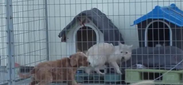 笼子门“啪”一声关上,狗妈妈和大黄狗都被困住了。它一开始吓得直发抖,以为要出大事。结果李大哥赶紧上前,安慰它,还给它拿了吃的。狗妈妈慢慢冷静下来,看着小狗崽在旁边蹭它,好像明白了什么。大黄狗的任务完成,被朋友领走了,留下狗妈妈和它的孩子们。
